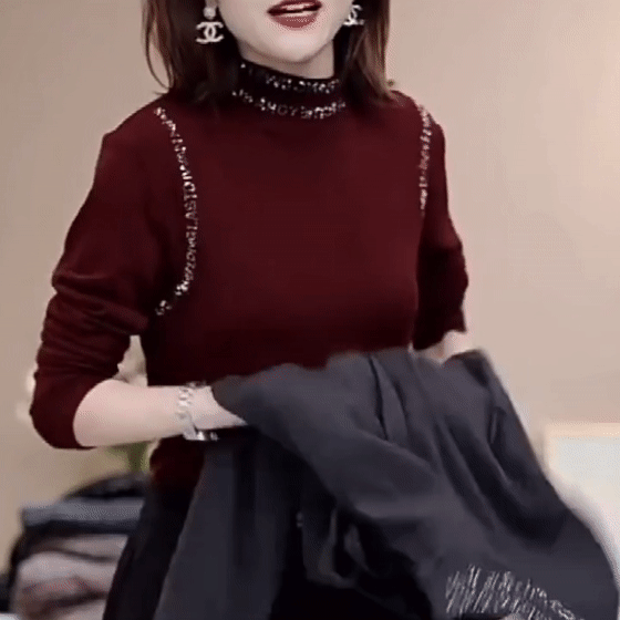 【รุ่นใหม่ฤดูใบไม้ร่วง】เสื้อแคชเมียร์ประดับเพชรเรียบหรูสำหรับคุณแม่